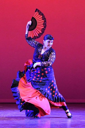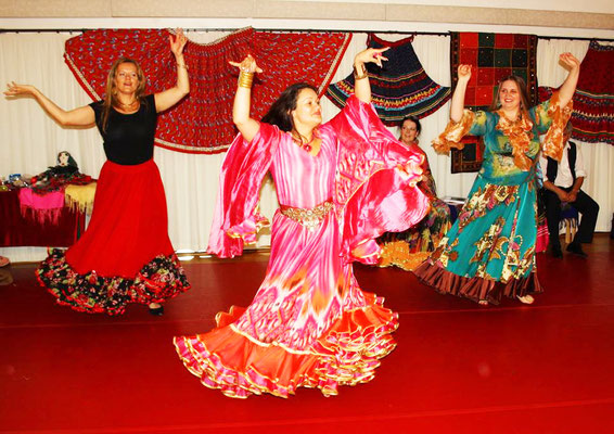 Eine faszinierende Verbindung zwischen der berühmten spanischen Gipsy Rumba und Elementen des orientalischen Tanzes zum Lied "Ay ven chiquita" Zapateados (Fußarbeit) und Rocktanzfiguren mit orientalischen Hüftfiguren in einer dynamischen Choreografie! Das besondere Highlight: Das elegante Spiel mit einem Fächer!