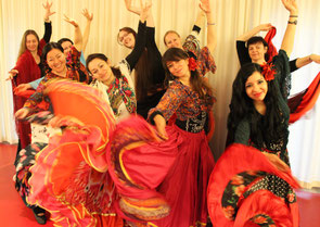 Die rhythmische Fussarbeit wird in diesem Workshop kombiniert mit dem prachtvollen Spiel der großen Schultertücher und Volant besetzten Röcke.