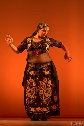 Empfohlene Trainingsbegleitung: weite Sultanshosen oder Rock, Hüfttuch, Zimbeln nicht vergessen!